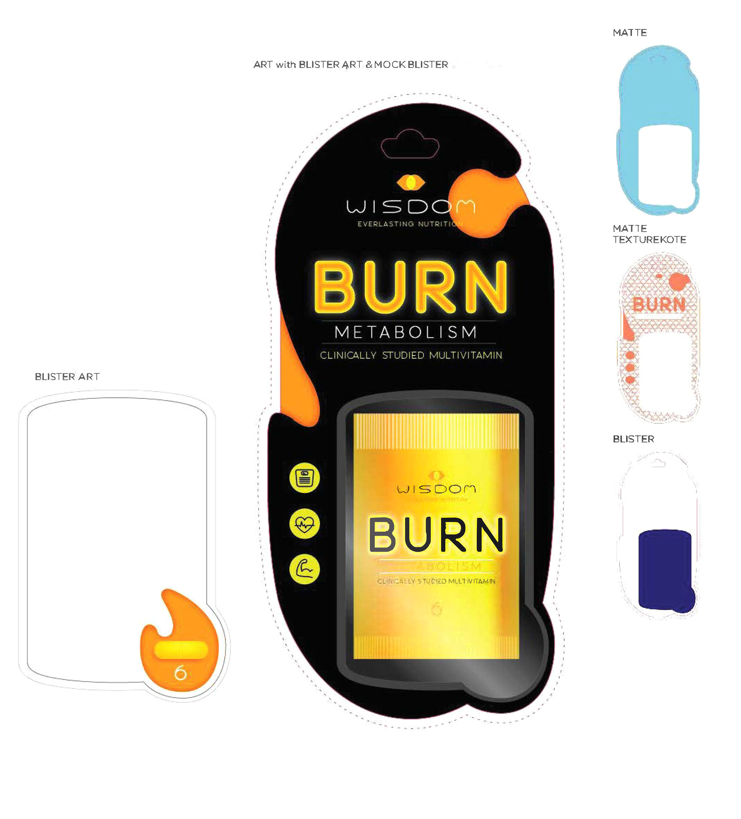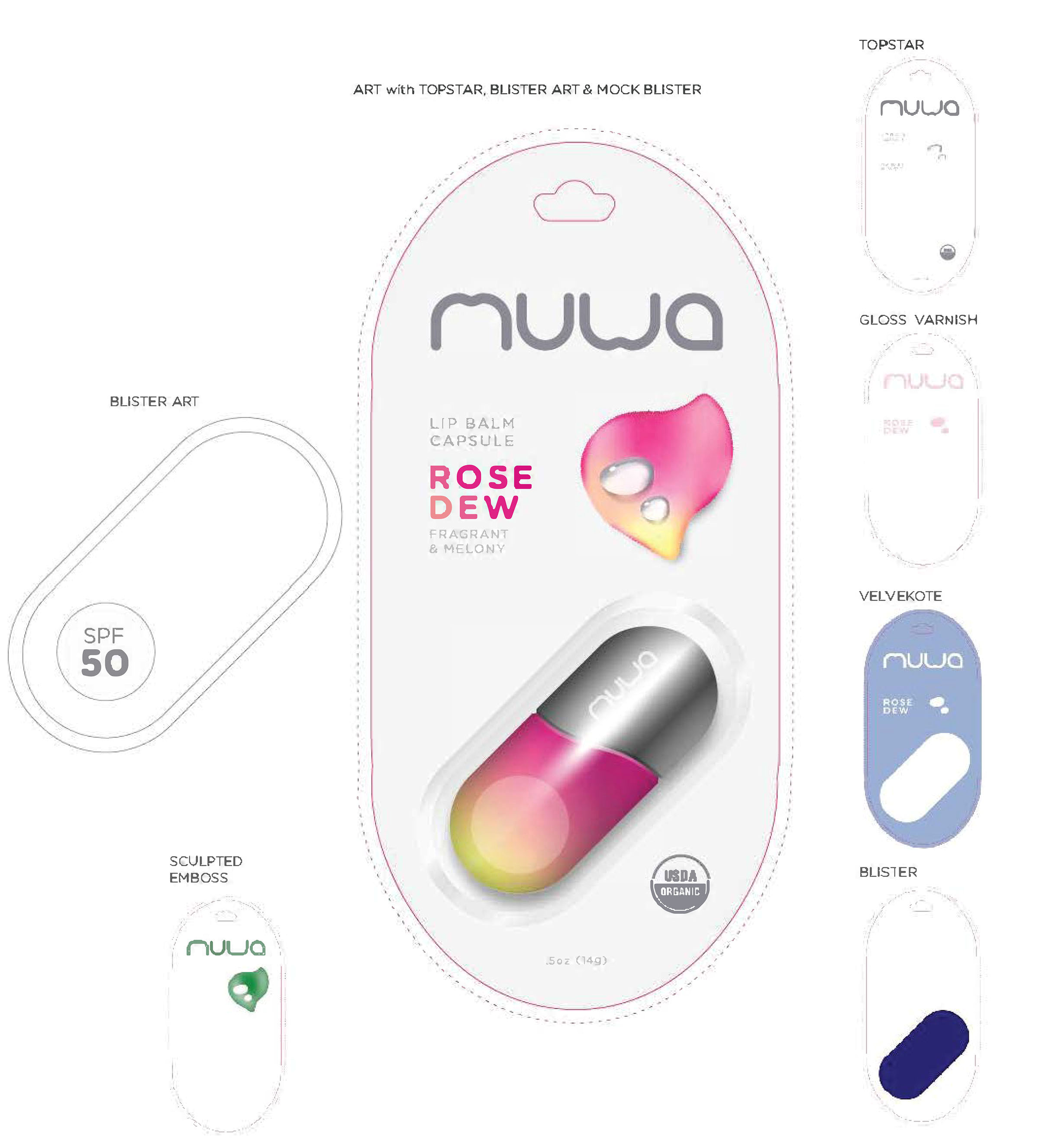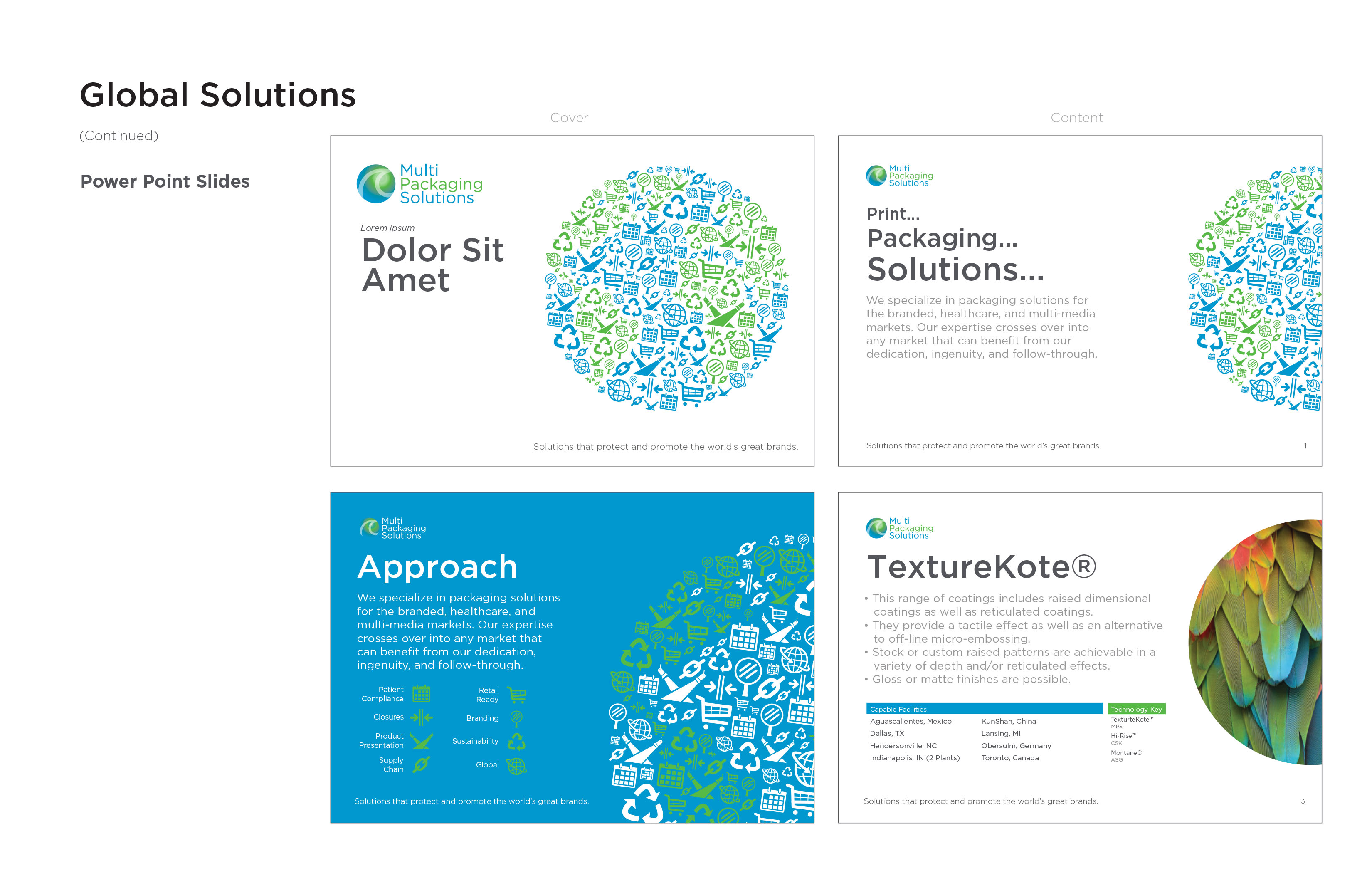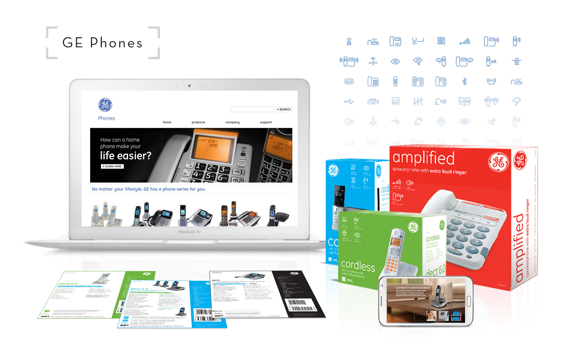 Packaging, instore displays, and brochures.