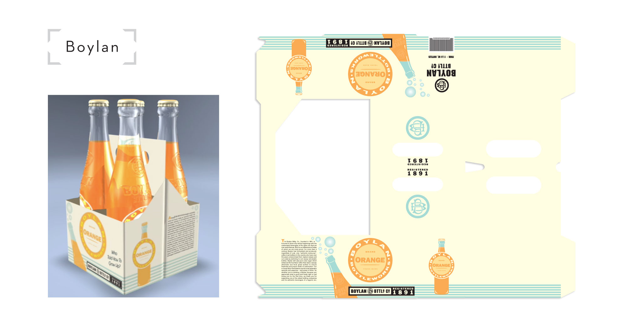 Boylan Bottleworks soda 4 pack package design. Used on all packaging, and formed the basis for the Boylan Blue and 4 pack still used today!