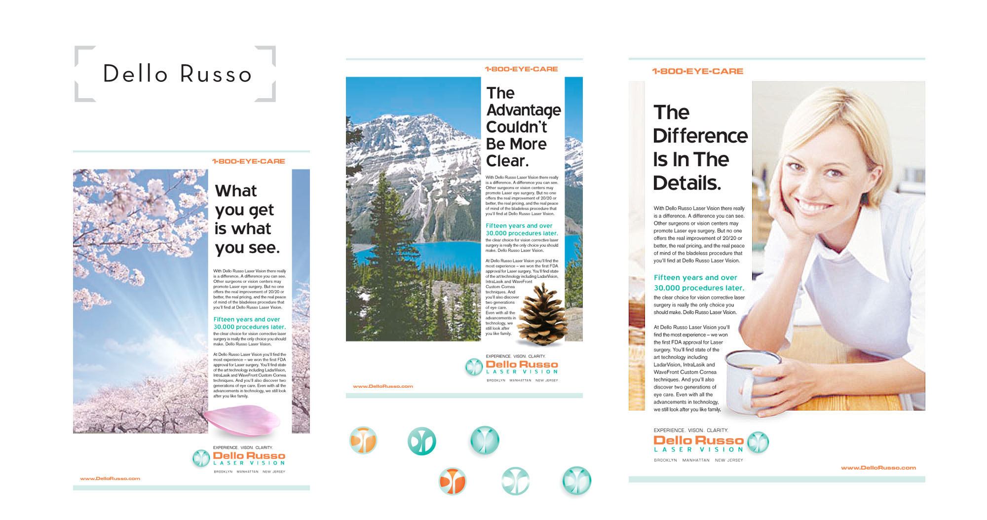 Dello Russo laser eye surgery ads, logo and rebranding.