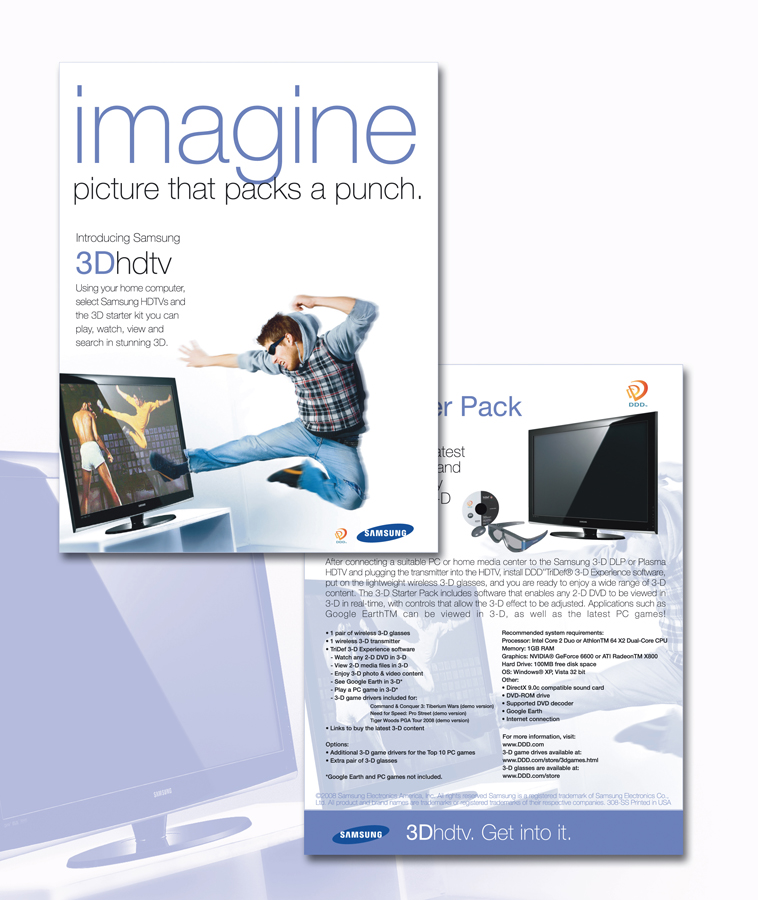 Websites, flash/html5 intros/demos, print and digital advertising, packaging, sell-sheets, and billboards.