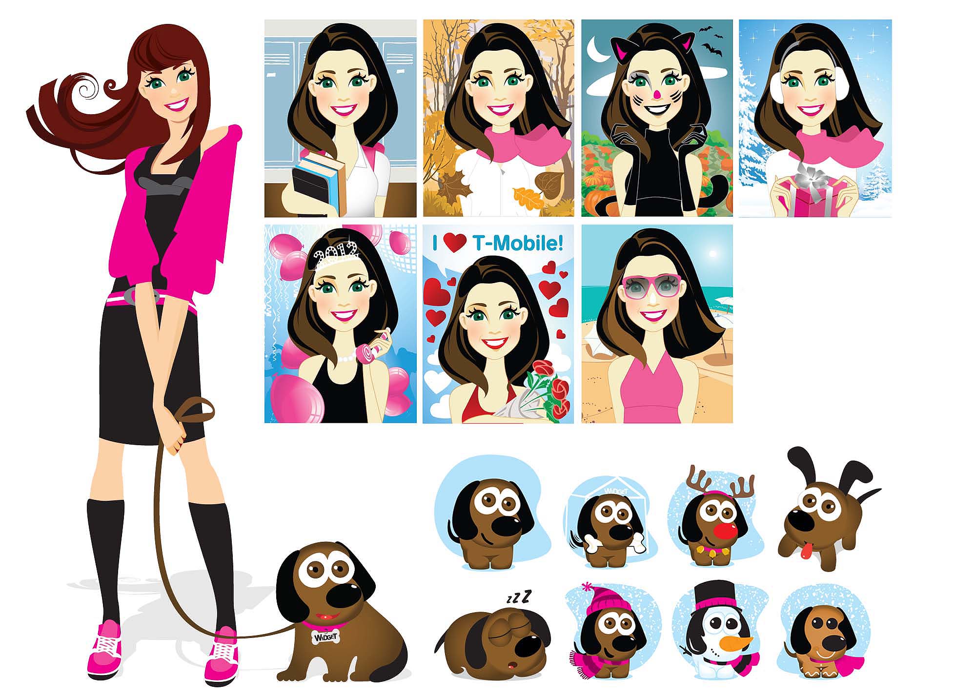 T-Mobile CONNECTIONS in-house forum mascot "Maggie & Widget" illustrations